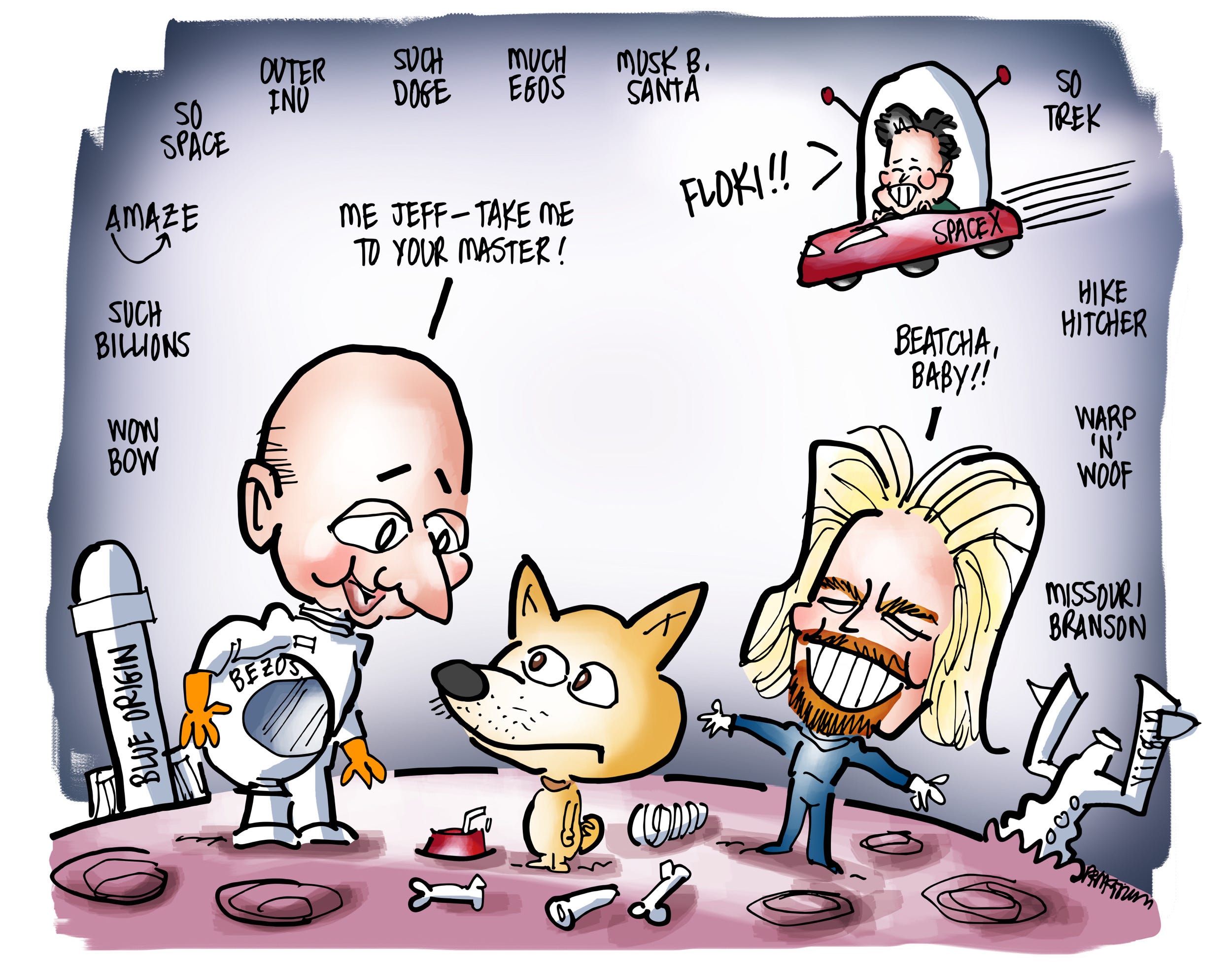 Bezos: We’ll be releasing two pre-cut pizzas when we achieve zero-gravity. You get to eat whatever you can catch.